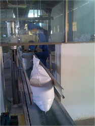 Figure one: More standardized package highlights the quality products Yuanye Chemical could provide (a full filled 25 KGS package with product is sewed, weighted and in delivery to warehouse from production line);